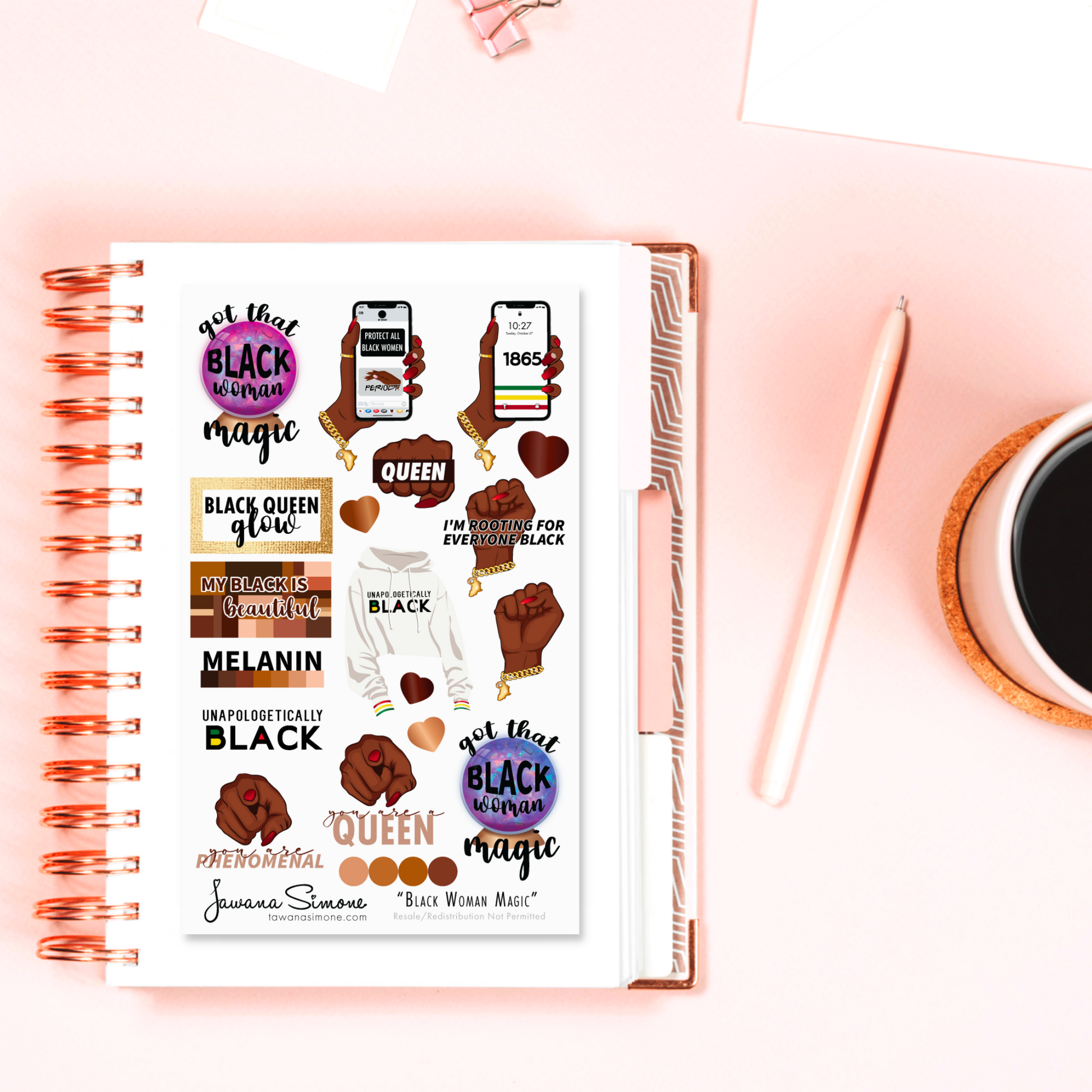 Looking for black girl planner stickers? Glam up your planner, calendar, scrapbook or what have you with our vibrant and uniquely designed diva doll sticker sheets