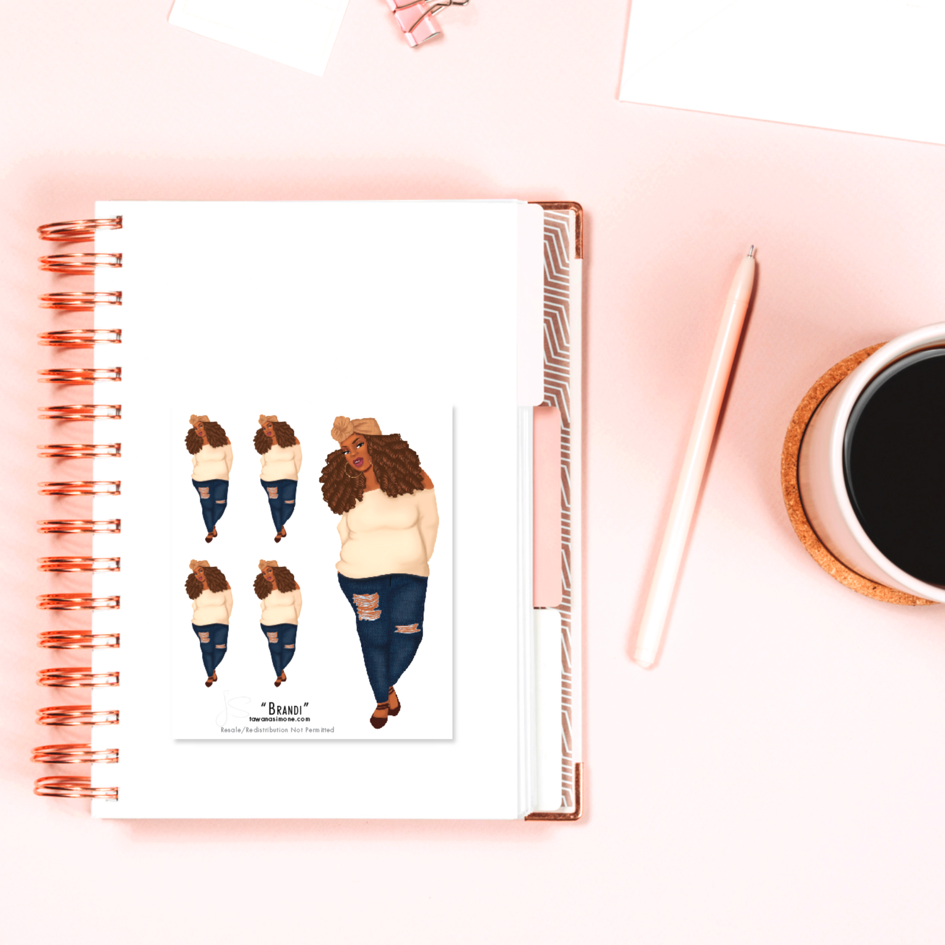 Want the diva only? We got you! Planner decorate or glam up your journaling with these vibrant and uniquely designed diva doll sticker sheets.