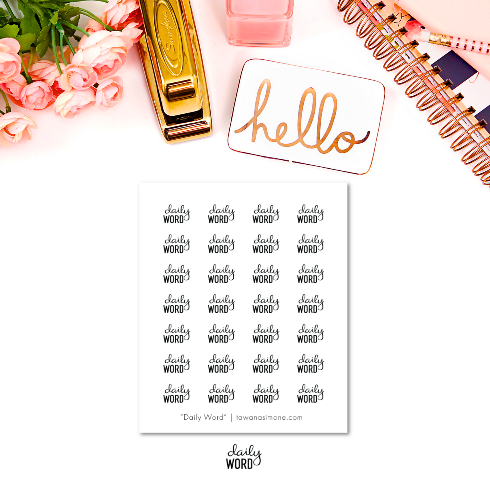 Keep track of your daily word sessions in your planner, journal or notebook. Black sticker printed on standard white matte sticker paper.