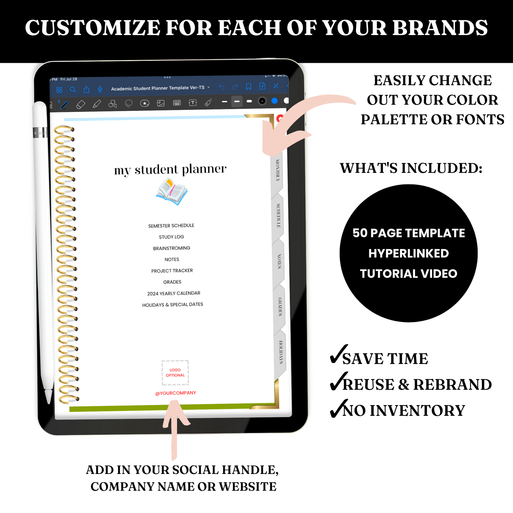 Take the guesswork out of your creating your digital academic student planner. This template is designed to give you complete creative control and a solid foundation to create your own digital planner to sell in your business.