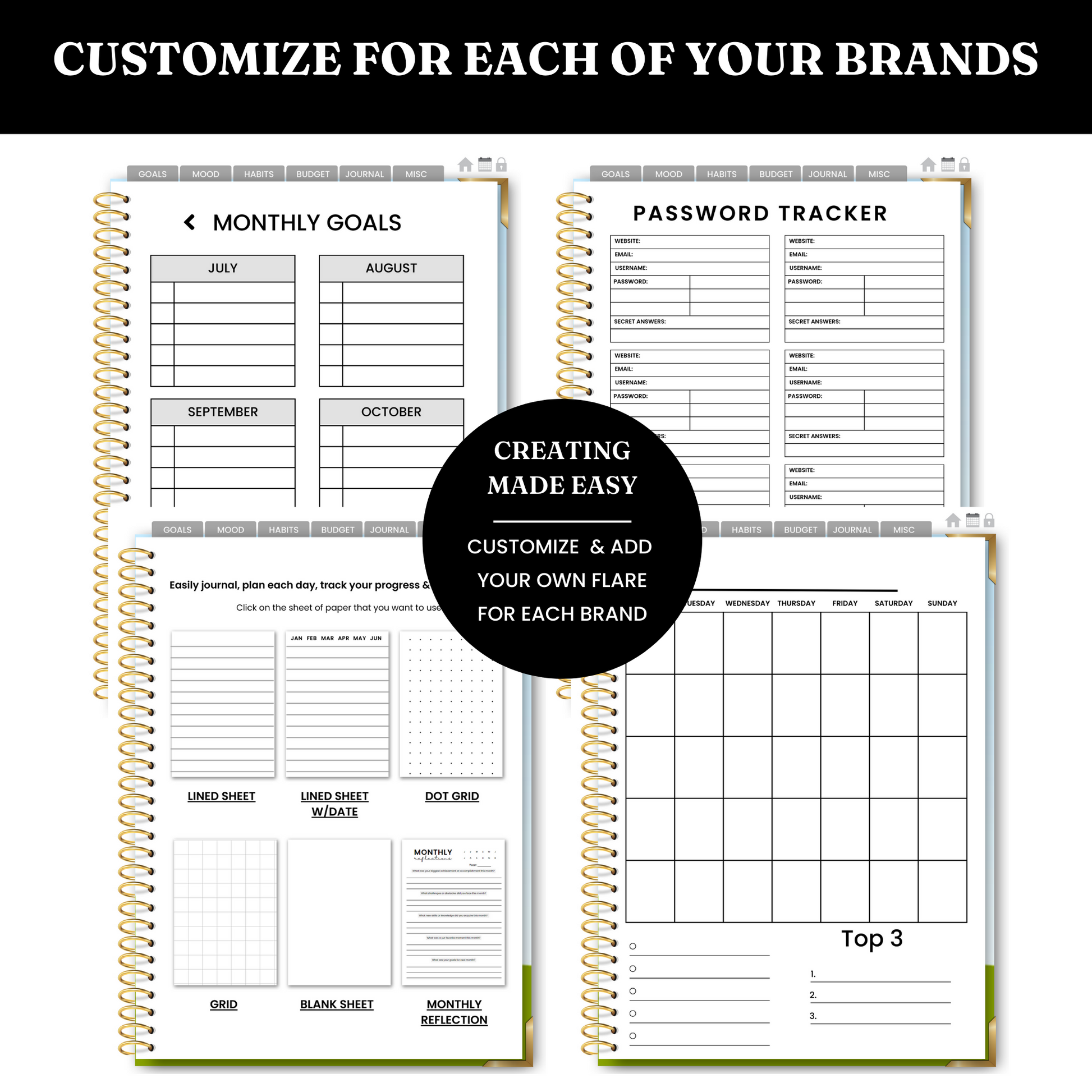 Take the guesswork out of your creating your digital journal. This template is designed to give you complete creative control ad a solid foundation to create your own digital planner to sell in your business.