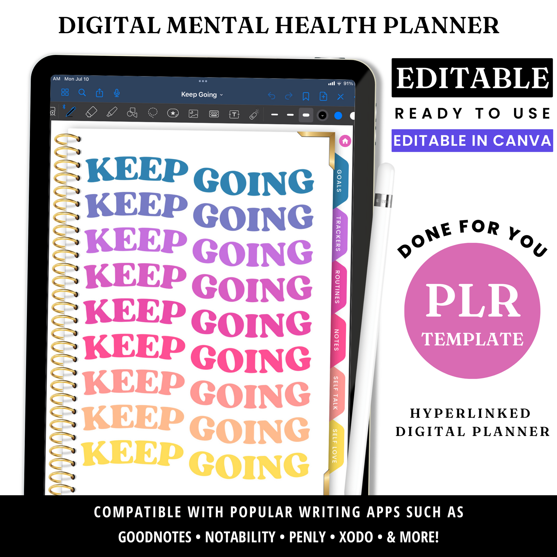 This done for you hyperlinked digital mental health planner is the ultimate tool for documenting and managing your mental health goals! This 54-page done for you template is a sleek design with customizable features.