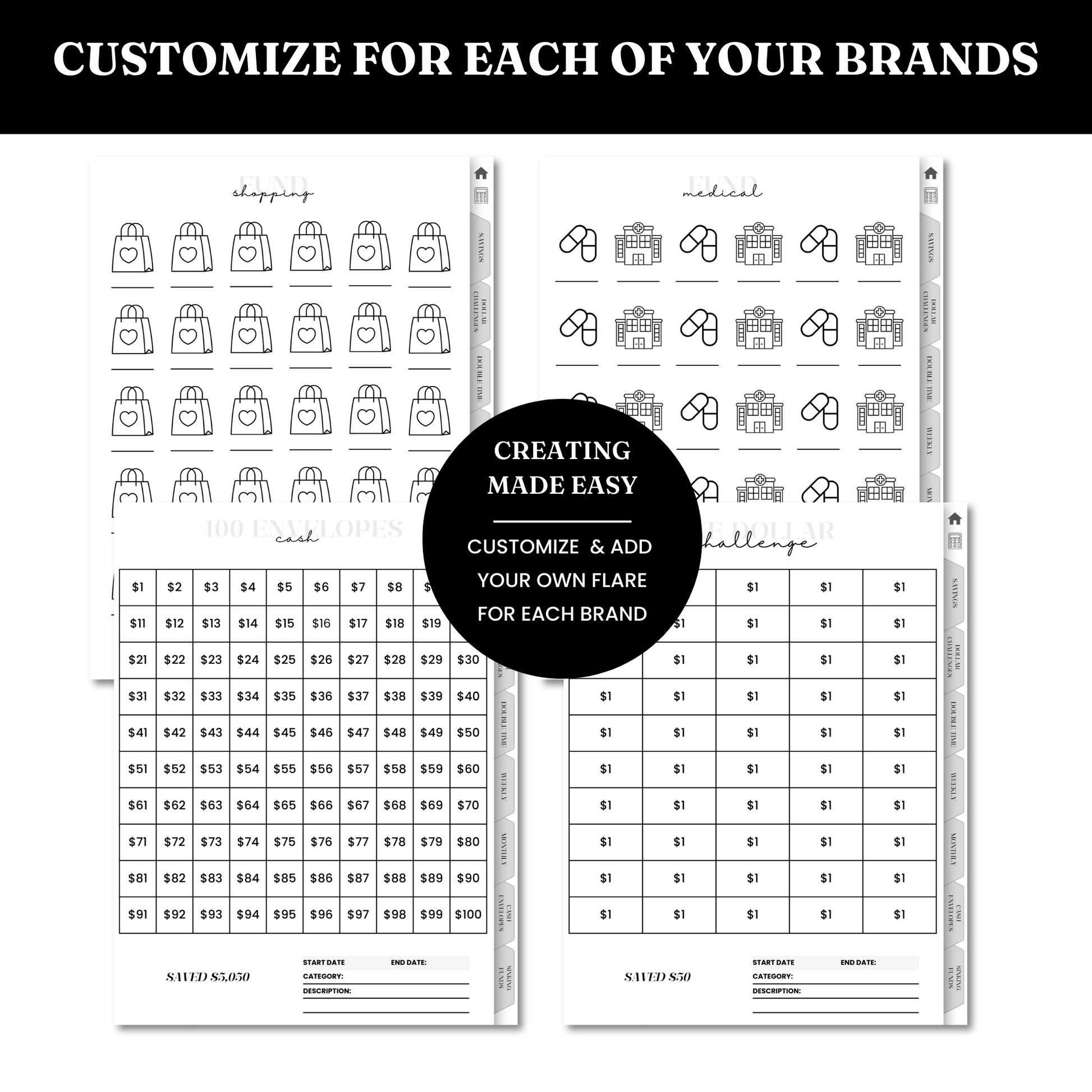 This done for you hyperlinked digital savings challenge journal is the ultimate tool for managing your finances and achieving your financial savings goals! This 67-page done for you template is a sleek design with customizable features.