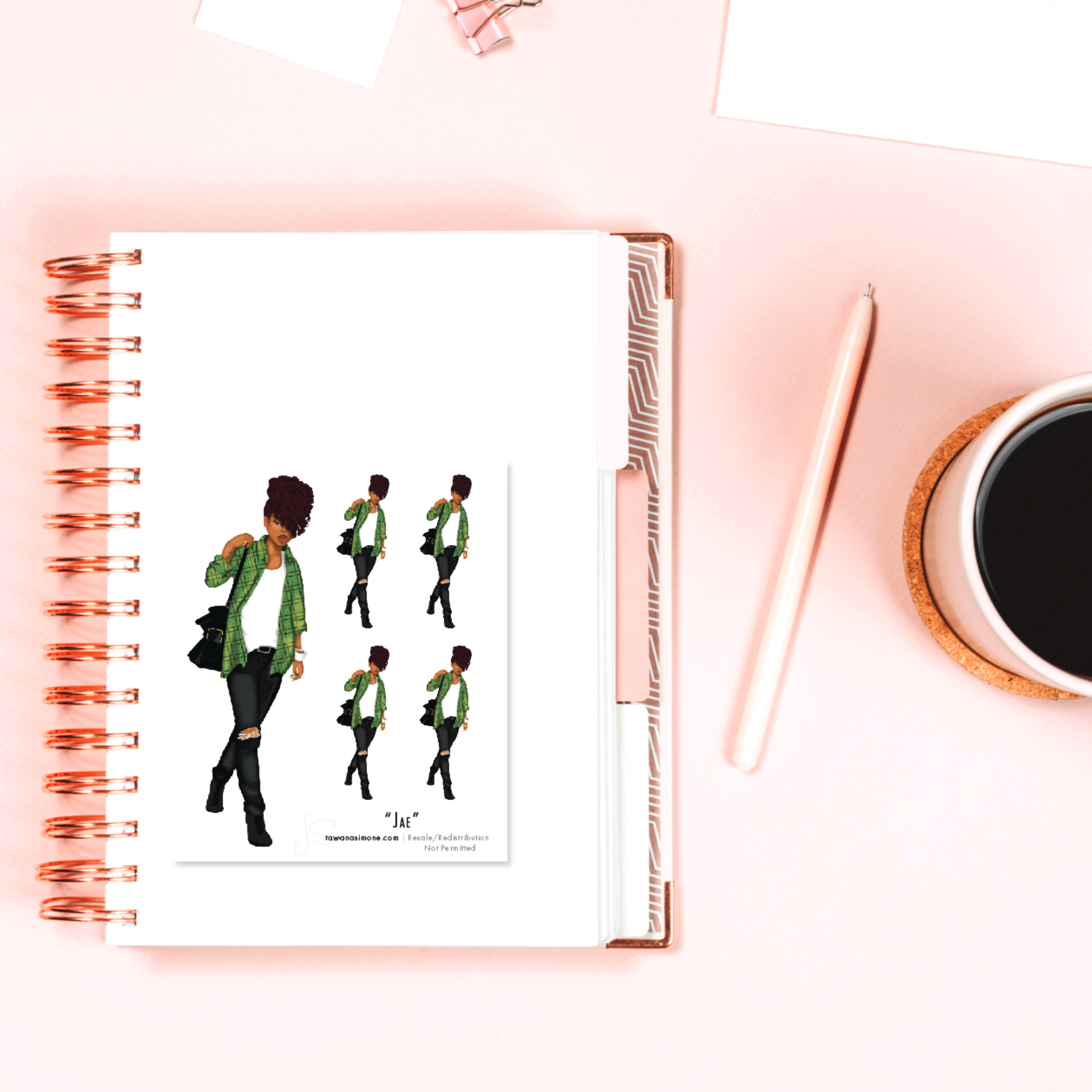 Want the diva only? We got you! Planner decorate or glam up your journaling with these vibrant and uniquely designed diva doll sticker sheets.