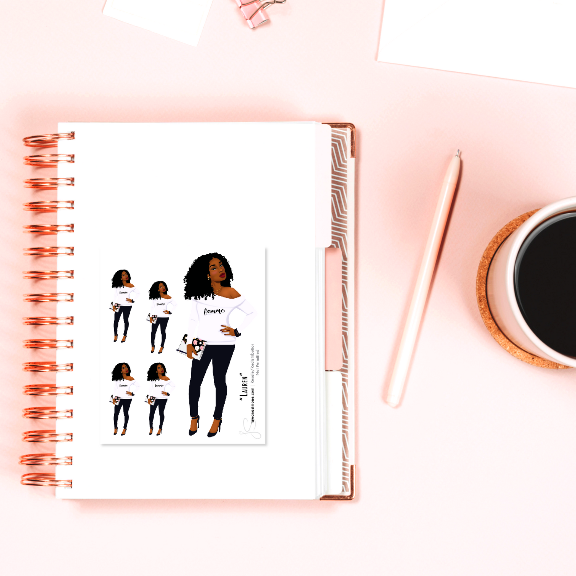 Want the diva only? We got you! Planner decorate or glam up your journaling with these vibrant and uniquely designed diva doll sticker sheets.