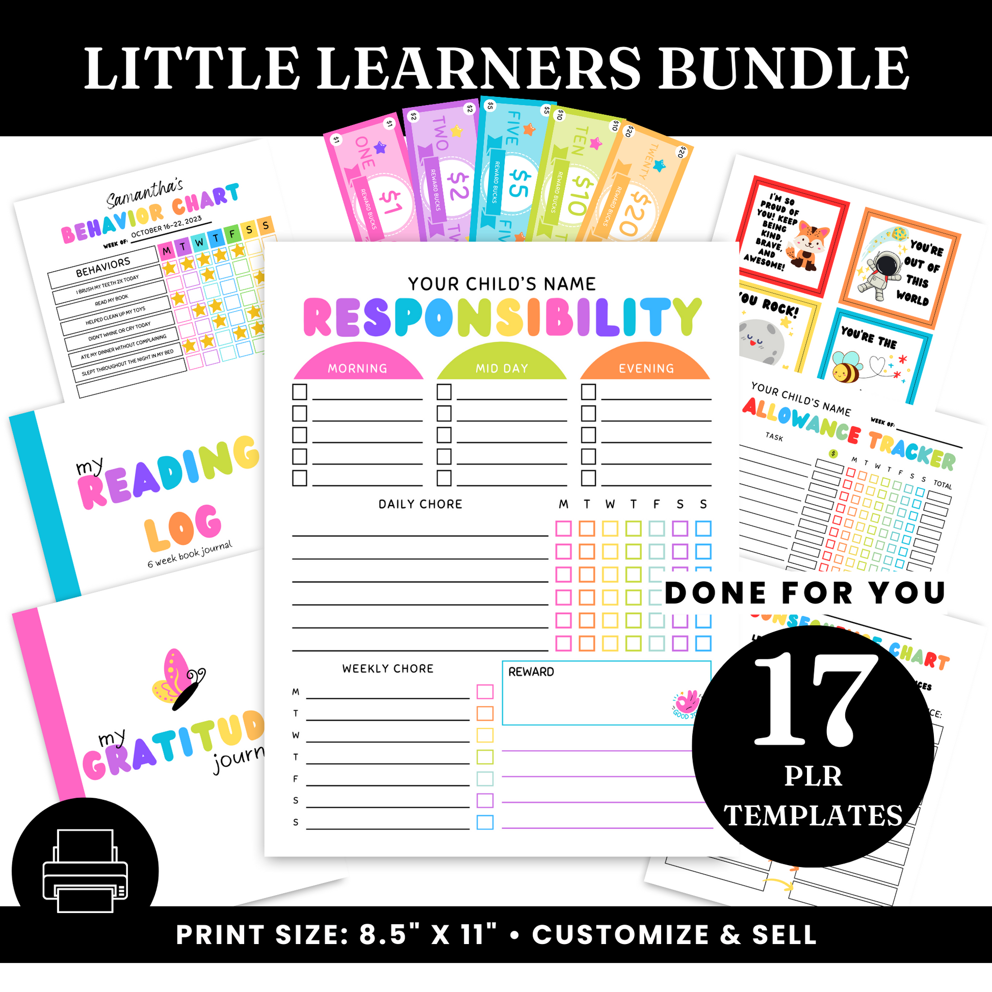 The little learners bundle template is done for you digital products that focus on kids' early child development with behaviors, boosting emotional well-being, fostering confidence, learning money management and more.
