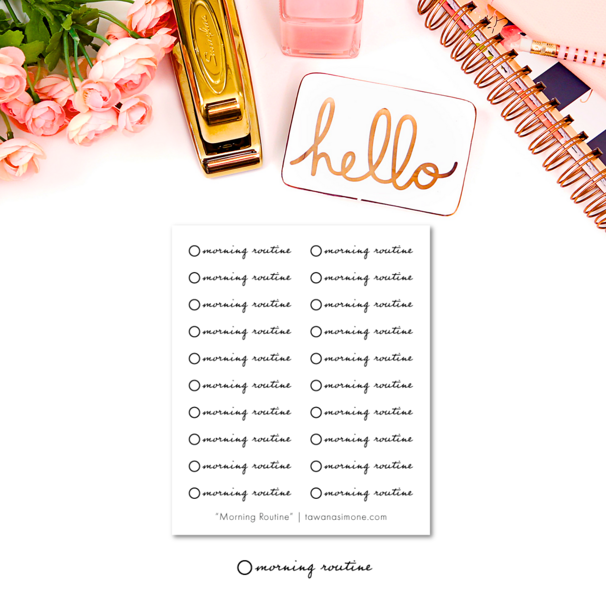 Keep track of your morning routine sessions in your planner, journal or notebook. Black sticker printed on standard white matte sticker paper.