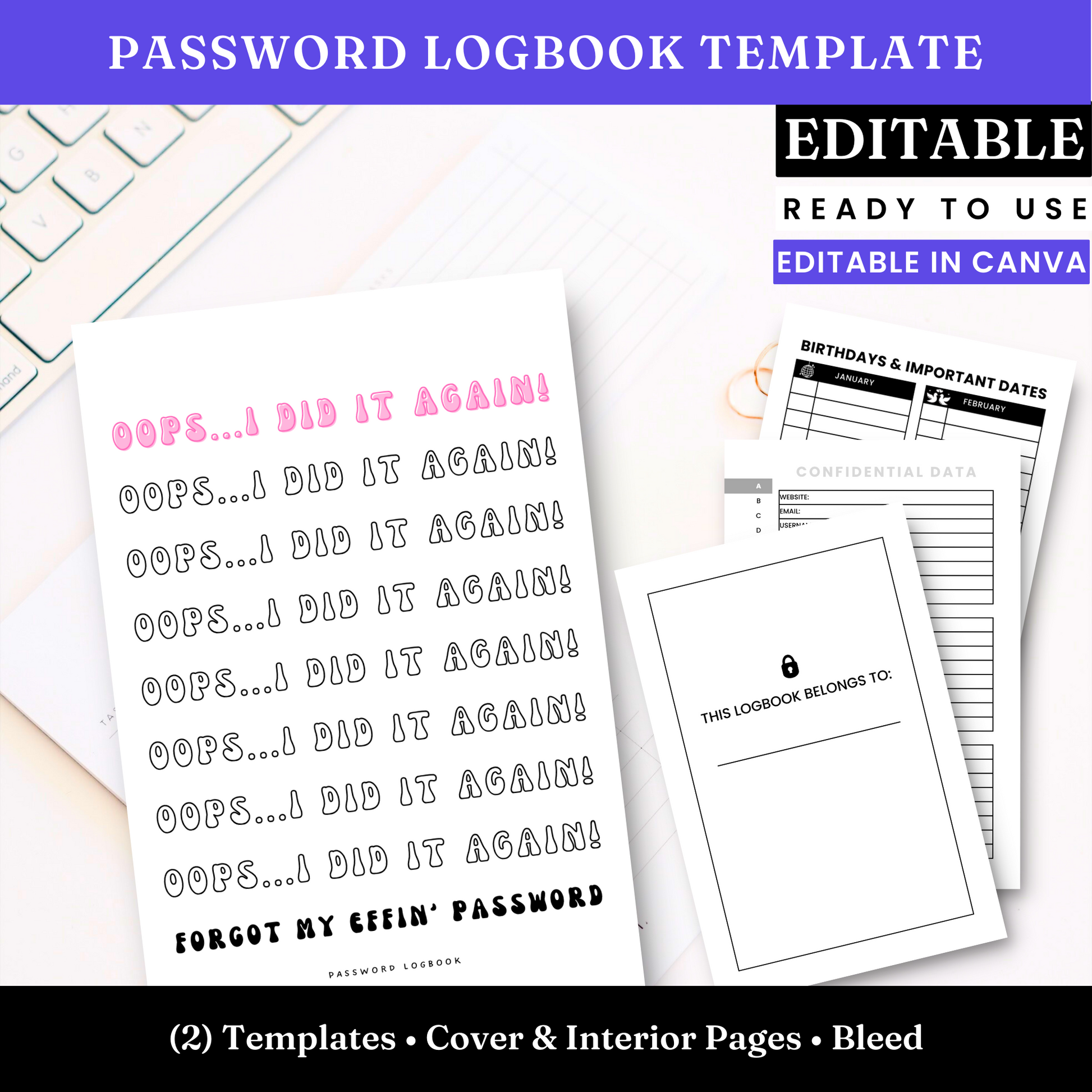 With this easy-to-use template, you'll breeze through the process of customizing your very own password logbook in no time. 💨 No more guessing or struggling with formatting – we've done all the heavy lifting for you! 🏋️♂️