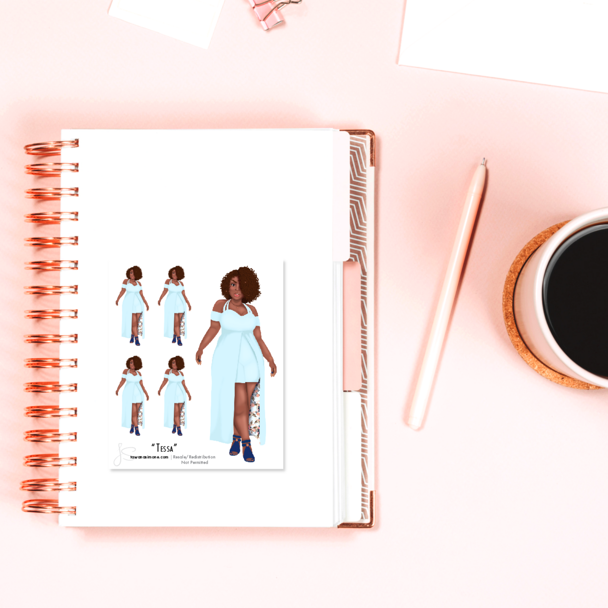 Want the diva only? We got you! Planner decorate or glam up your journaling with these vibrant and uniquely designed diva doll sticker sheets.